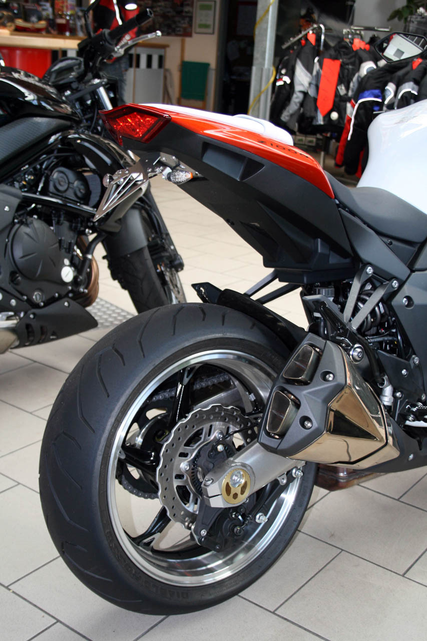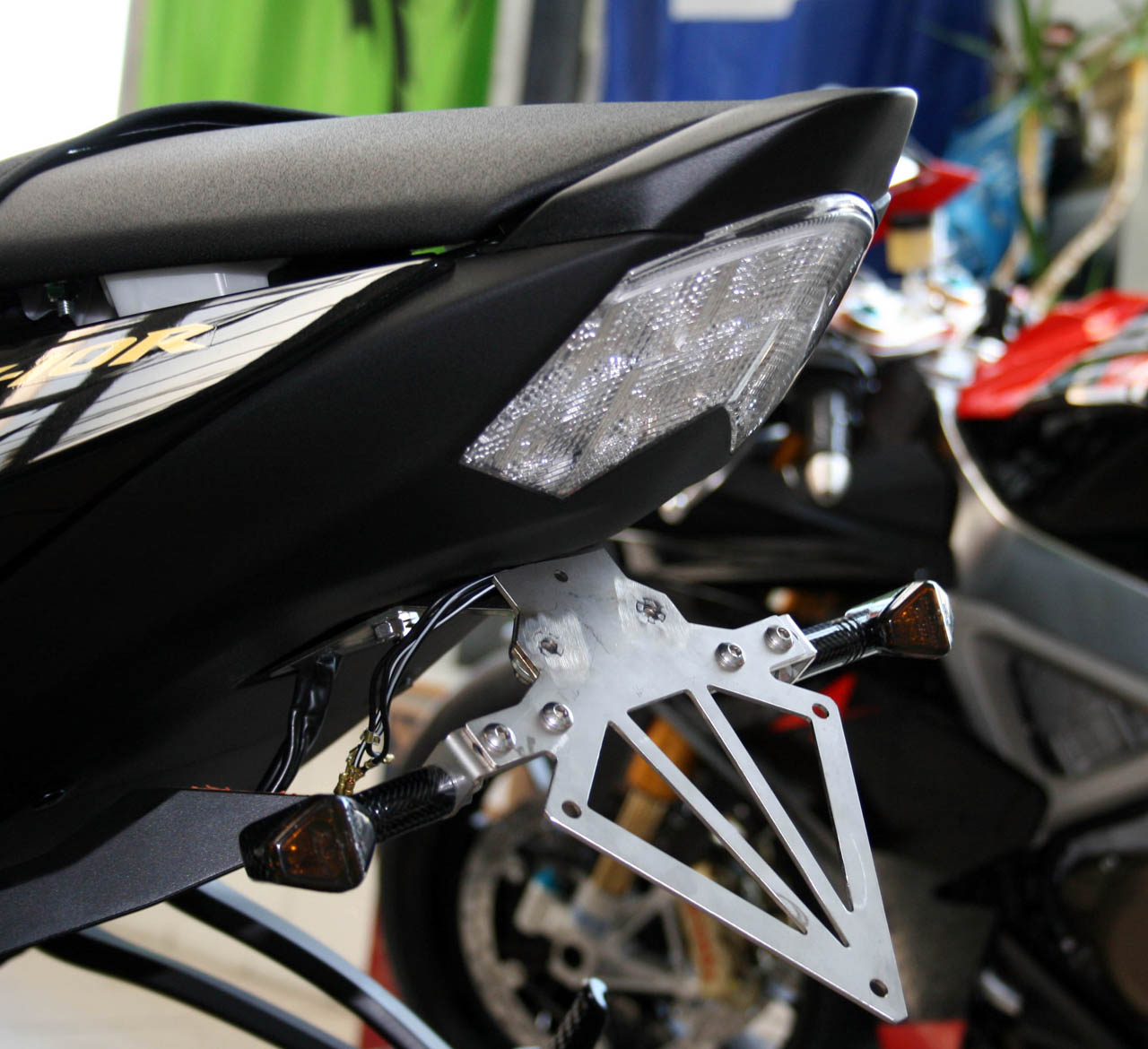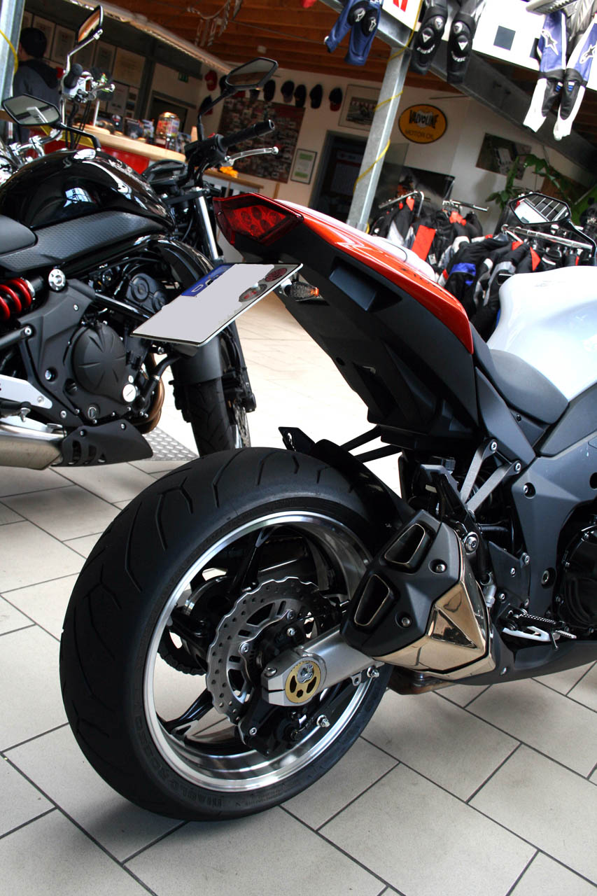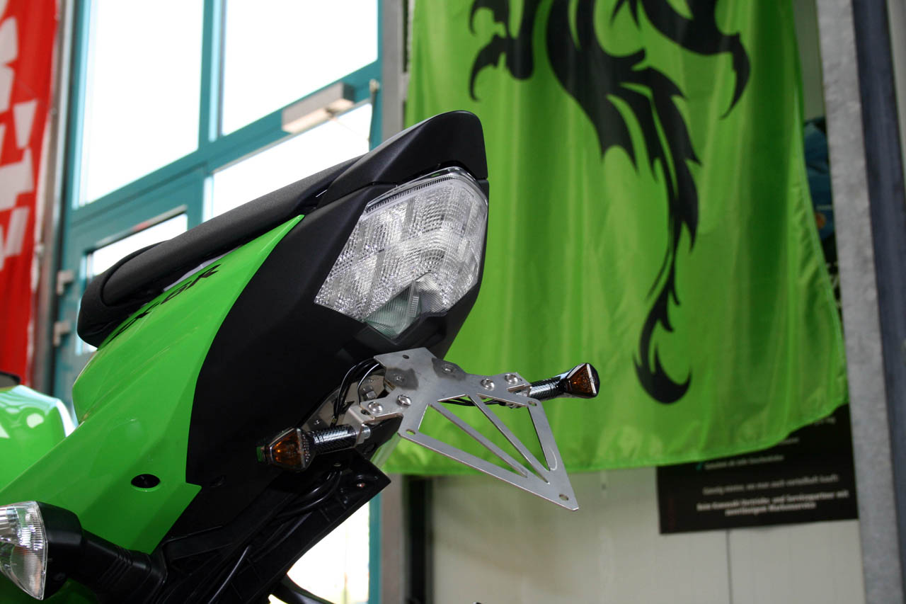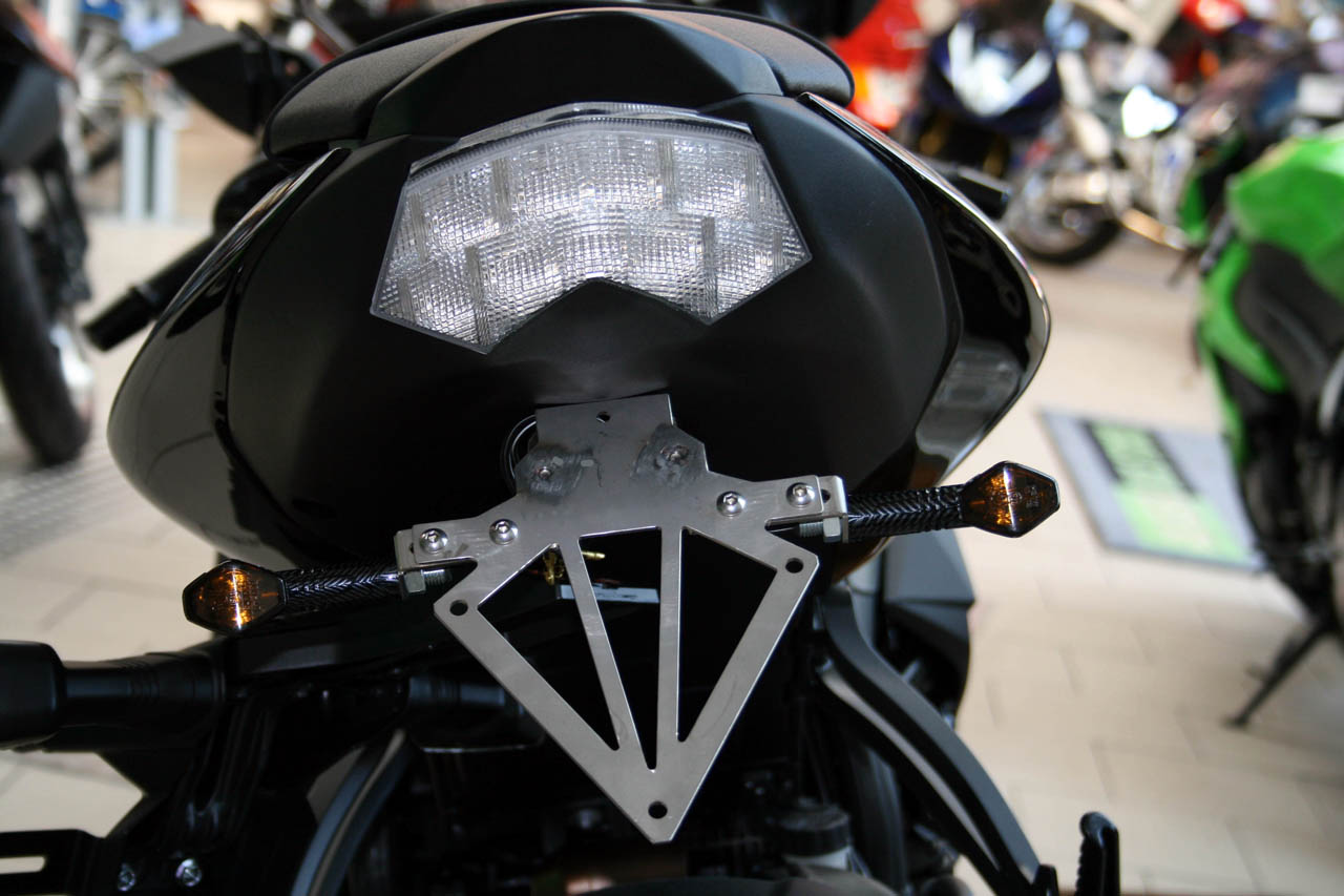 Der Kennzeichenhalter ist zweigeteilt, und mit eingeschweißten